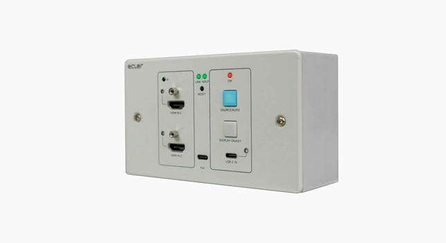 4K HDMI® zidni odašiljač (wall-plate) s 2 × HDMI® ulaza i 1 × USB-C ulazom